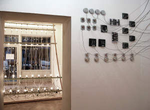 Klara Hobza, You Just Might Get It, 2011, door bells, cables, transformers, dimensions variable