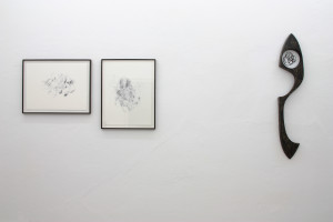 Benja Sachau, Companion, 2013, ceramic, marker, wood, 122 × 152 cm