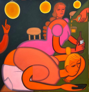 Grace Weaver has created a painterly universe of the modern Western world. Her works can be read as social commentary of city life and its inhabitants. Although her protaganists often seem out of place, the scenarios stand in as markers of the mundane – whether working from home, pursuing outdoor recreation or spending leisure time at bars. With an inward gaze, their bodies moving clumsily in space, they seem overwhelmed by the complexities of everyday life. Combining color and story-telling, her works offer vast possibilities of interpretation and depict the vividness of modern experience.