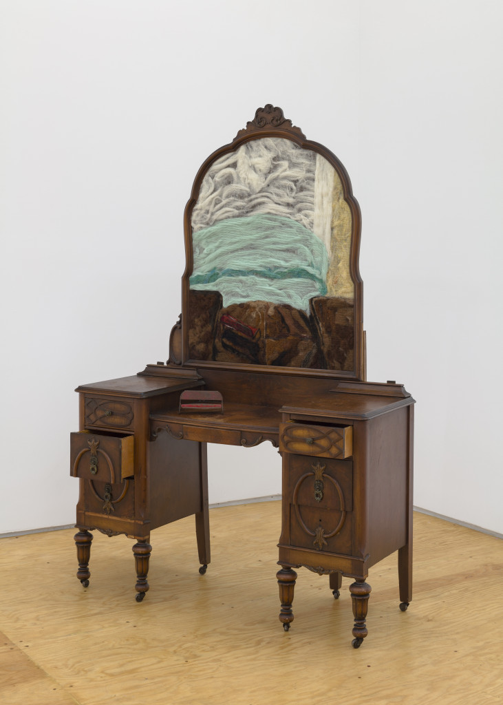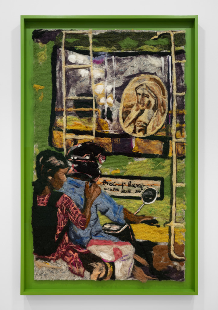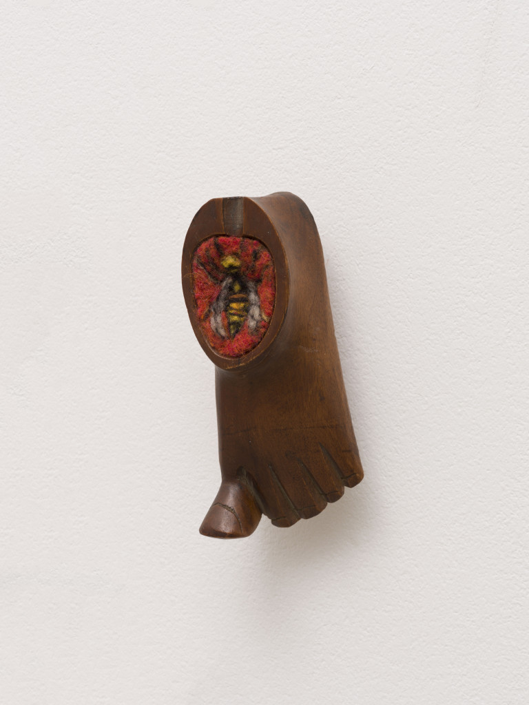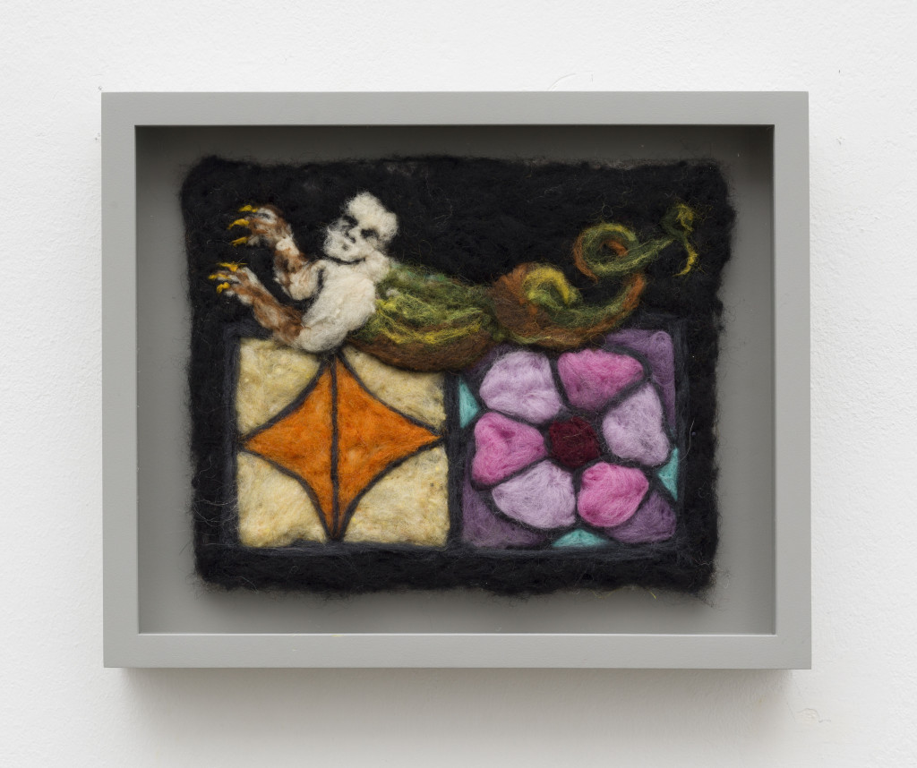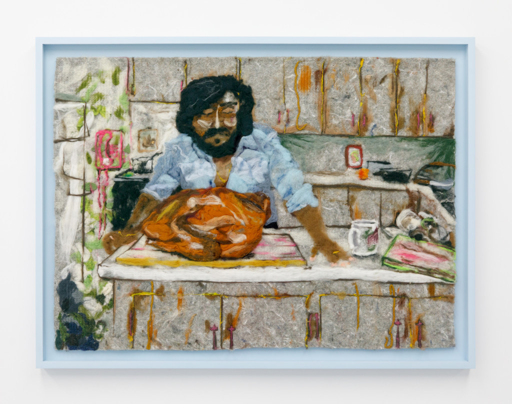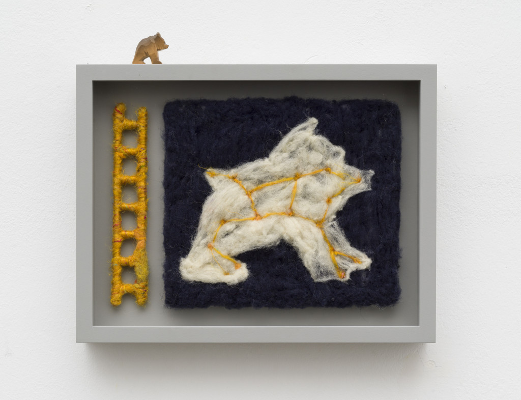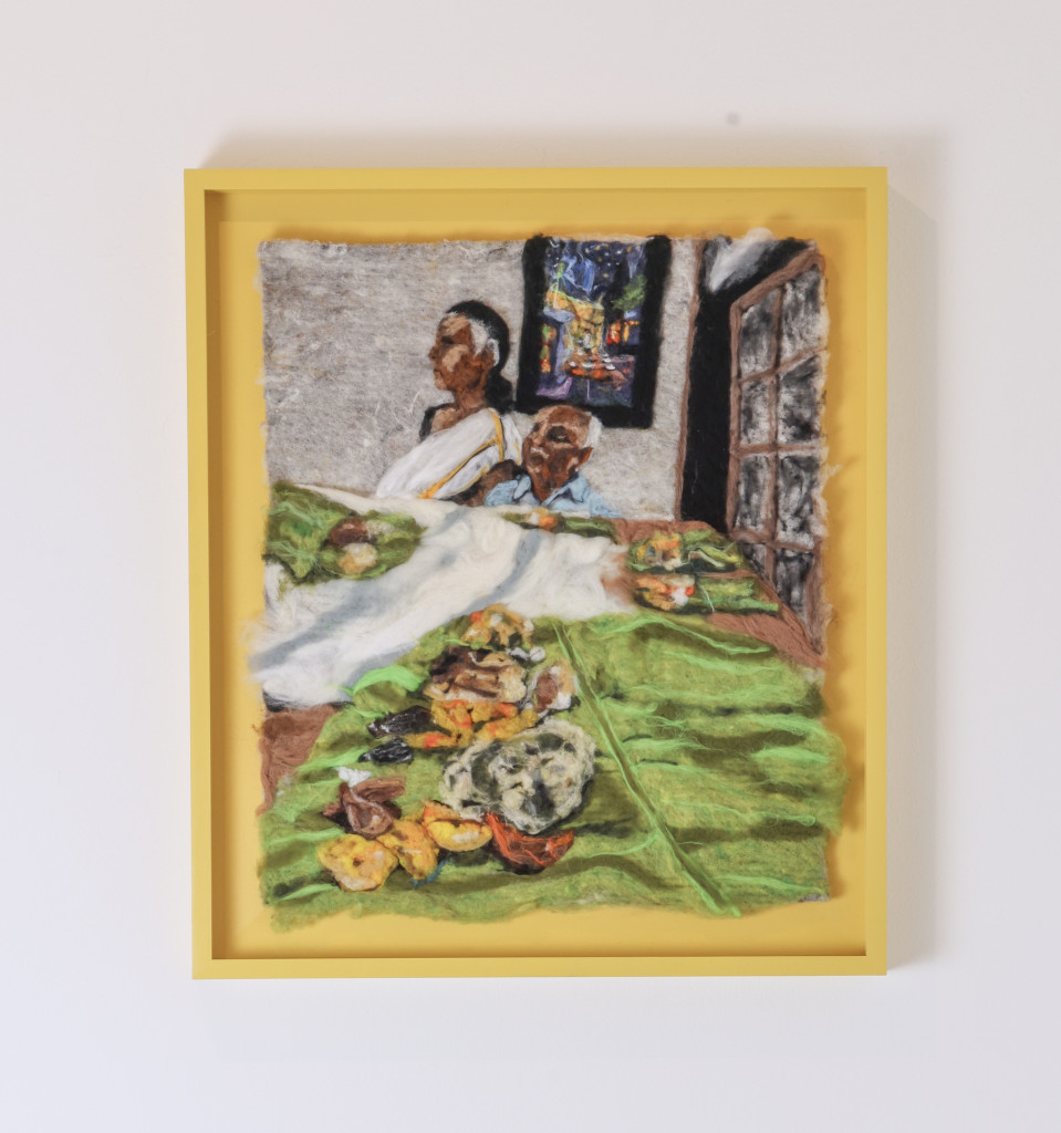 Melissa Joseph‘s work considers themes of memory, family history, and the politics of how we occupy spaces. Working primarily with needle felt and found objects, she intentionally alludes to the labors of women as well as experiences as a second generation American and the unique juxtapositions of diasporic life.