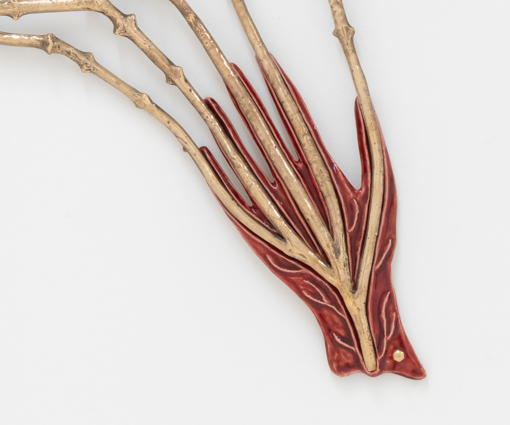 Paloma Proudfoot, Drinking in my eyes (III) (detail), 2023, glazed ceramic, bolts, (2x) 50 × 30 × 4 cm