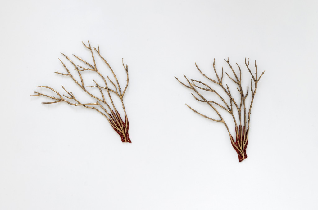 Paloma Proudfoot, A Body Never Stops, 2025, bronze, glazed ceramic, 2 × 54 cm (right hand), 76 × 50 cm (left hand)