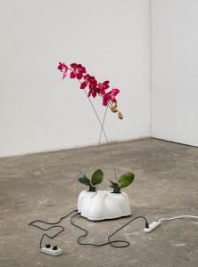 Rachel Youn, Beckoning, 2020, massager, artificial plant, 110 × 80 × 62 cm