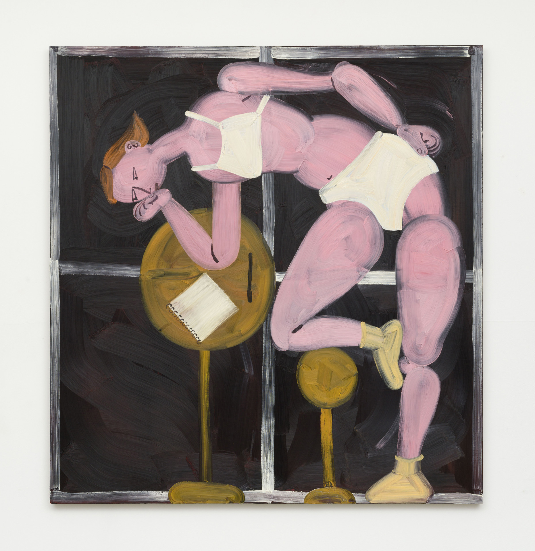 Wong takes up space, fills space and makes space, at a large scale. Themes around femininity, queerness, desire, and the right to female pleasure, pervade her pieces. Saturating each canvas, Wong’s mission is to fill that void, to feel no guilt or shame for taking what one needs and wants. But there is that anxiety too, the need to identify what one needs and wants, and the fear that this process of identification will be harder to achieve than one hoped. By taking control of their bodies and diets themselves, Wong’s women still feel out of control. The works signal a release, but with this release, comes also, a panic.