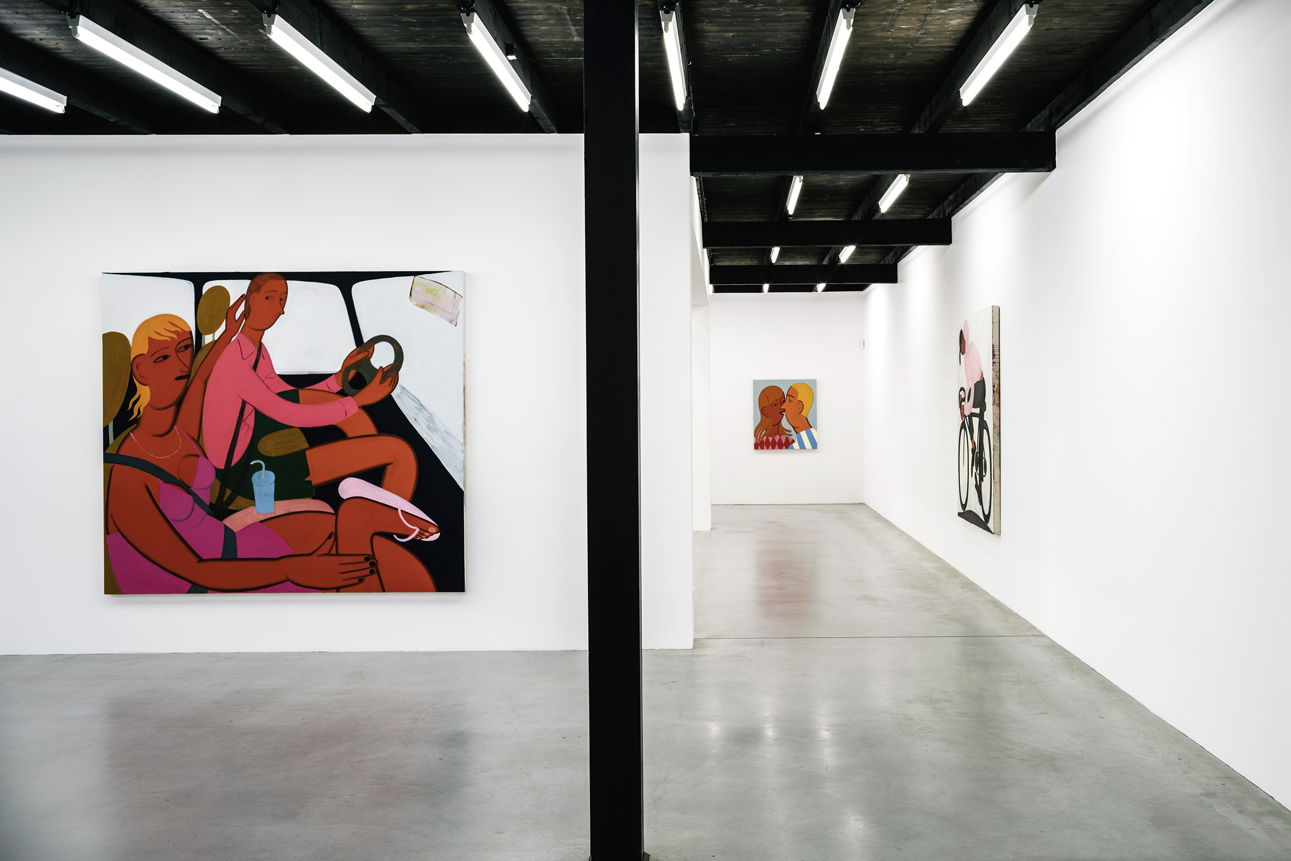 There is a simple stillness to Weaver’s figures with their scattered glances. They appear as if they were biding their time, waiting for something. For a bus or a call, for summer or the pandemic to end, who’s to say? They endure in this awkward state of limbo. Maybe there’s melancholy. Humor even. Like a »Droop«, something burdensome barely upheld, making a funny shape of one’s mouth when saying it.