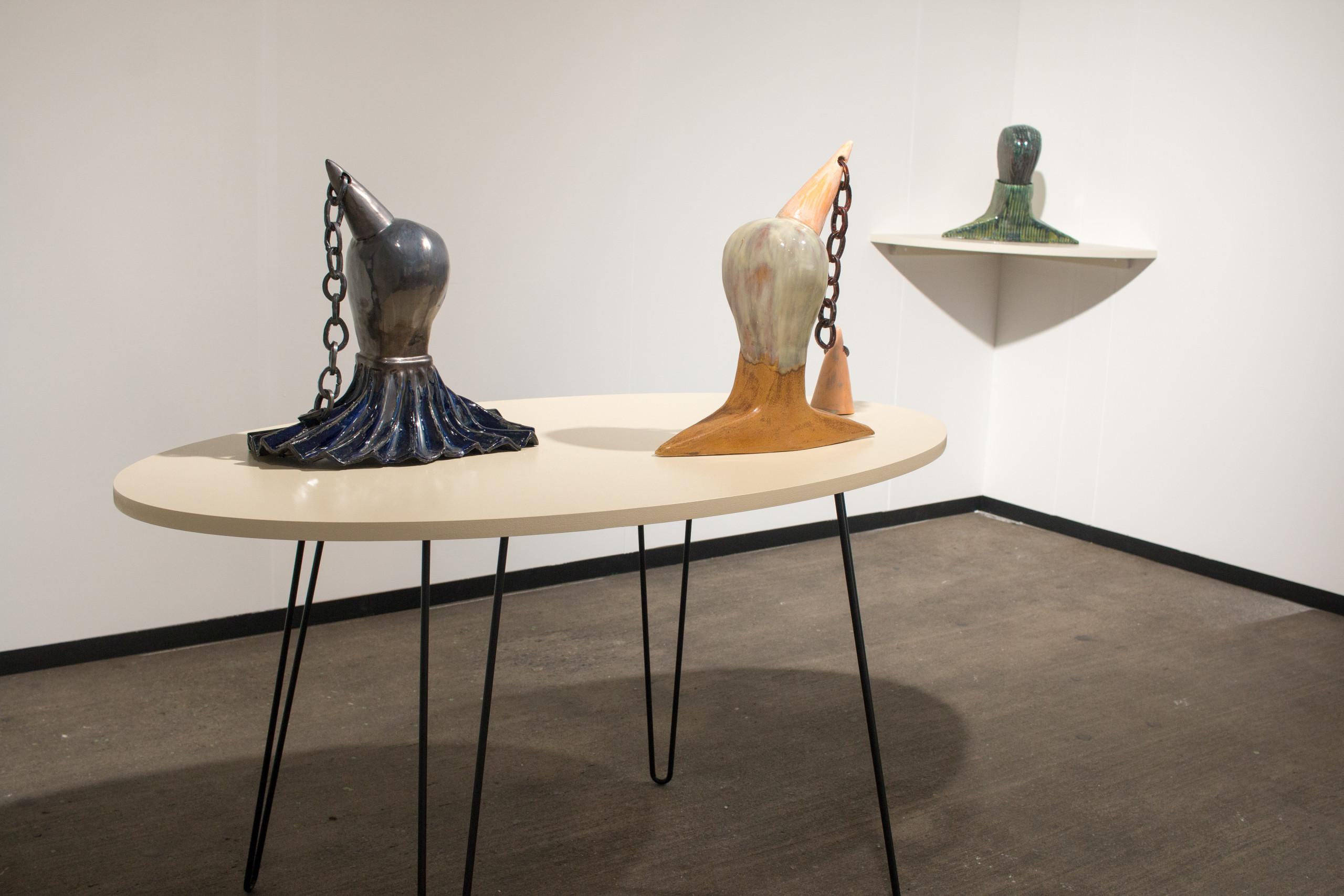 Floating in the in-between space of uncertainties, Proudfoot & Piasecka’s Ensemble addresses the artists’ personal proximities to fluctuating states of health. Building on their collaborative practice exploring the relationship between performance and sculpture, the installation comprises a series of clothes- sculptures presented on animatronic structures, mimicking internal bodily functions. The accompanying sound work draws on therapeutic ASMR, somatic movement practices and sampling techniques. In tandem with each other, the sculptures and sound work set the stage for a live performance but come to embody the performance themselves.
