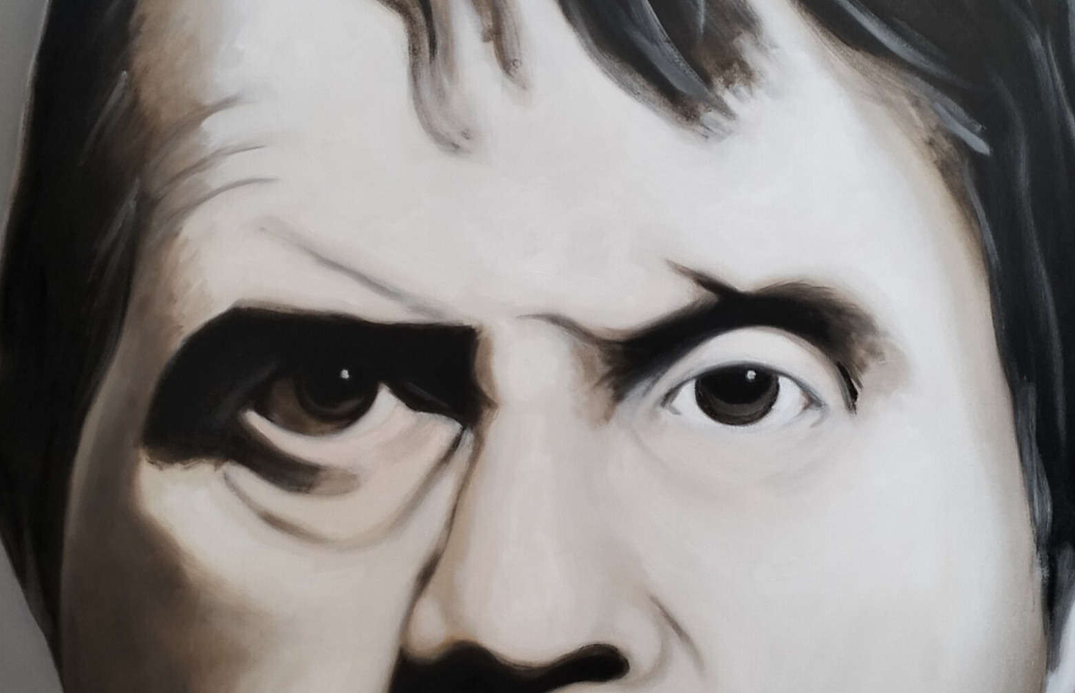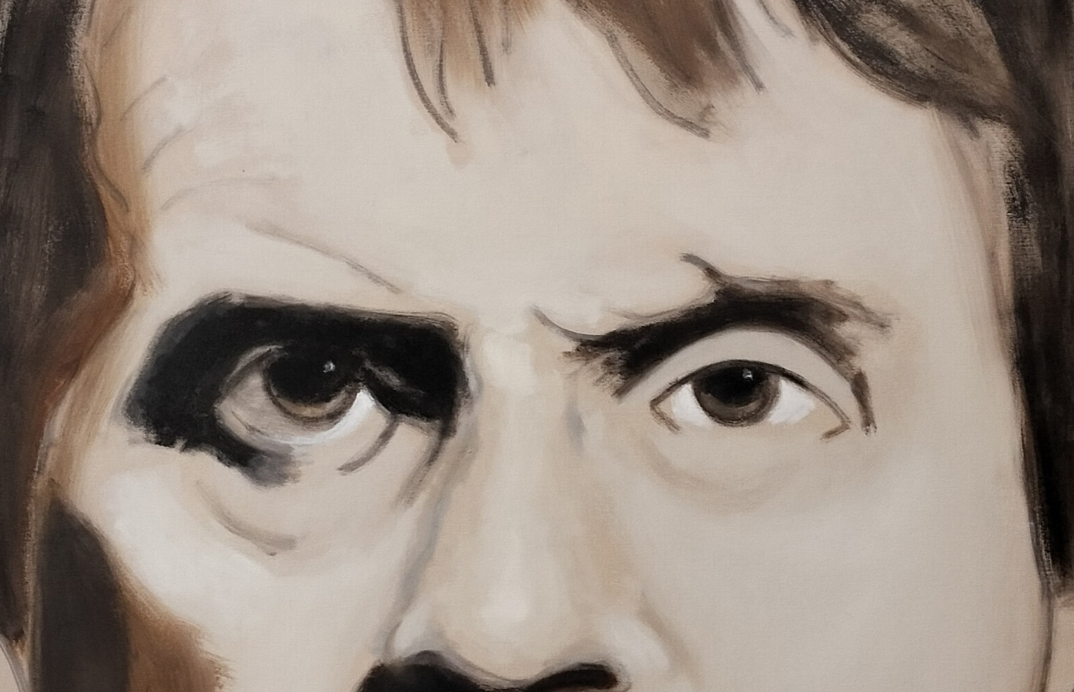 Shahin Afrassiabi’s recent series of paintings takes as its starting point a 1971 photograph of Francis Bacon in his London studio, taken by Francis Goodman and now held in the National Portrait Gallery. Afrassiabi dissects and reinterprets this image through a range of expressive painterly variations that hover between figuration and abstraction. Figuration, because we recognise the image of a person; abstraction, because that recognisability — bound to myth and to the legacy of painting itself — becomes self-reflexive.